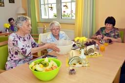 In der Tagespflege können 15 Gäste Ihren Lebensabend sinnvoll und in Gemeinschaft verbringen. Lesezirkel, Spaziergänge, Gymnastik, organisierte Ausflüge, Teilnahme an kulturellen Veranstaltungen und gemeinsame hauswirtschaftliche Tätigkeiten sind im Angebot. Durch die belebende Gemeinschaft und individuelle Betreuung in unserer Tagespflege werden Fähigkeiten länger erhalten oder verloren gegangene Fähigkeiten sogar zurück gewonnen. Pflegerische Besonderheiten werden professionell beachtet.